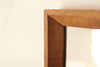 Marco de madera de iroko con ingletes en las esquinas reforzados mediante encastres de madera de nogal. Dispone de riel trasero para facilitar su cuelgue. No incluye espejo.