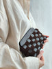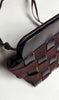 El clutch MIMBRE es un bolso de mano ideal las ocasiones más especiales. Consta de una estructura de piel trenzada y forro de lona con bolsillo interior de piel de cabra, cierre con broches de imán, base reforzada y correa regulable extraible.