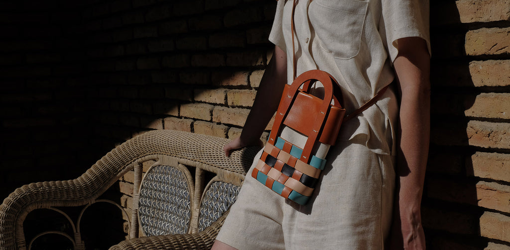 The MIMBRE bag series is inspired by the symbolism of braiding, craftsmanship and the sense of calm, tranquillity and well-being they convey. It is a revision of traditional basketry to adapt it to our everyday life, using the colours of the sky, light, shadow and the basket.