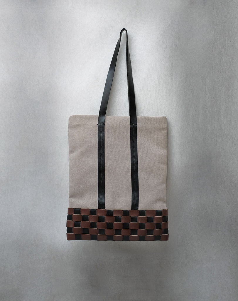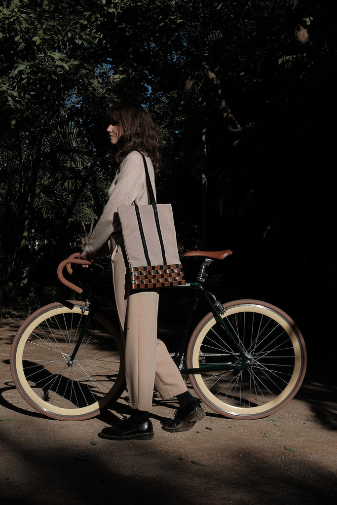 The MIMBRE series of bags is inspired by the symbolism of braiding, craftsmanship and the sense of calm, tranquillity and well-being they convey. It is a revision of traditional basketry to adapt it to our everyday lives, using the colours of the sky, light, shadow and the basket.