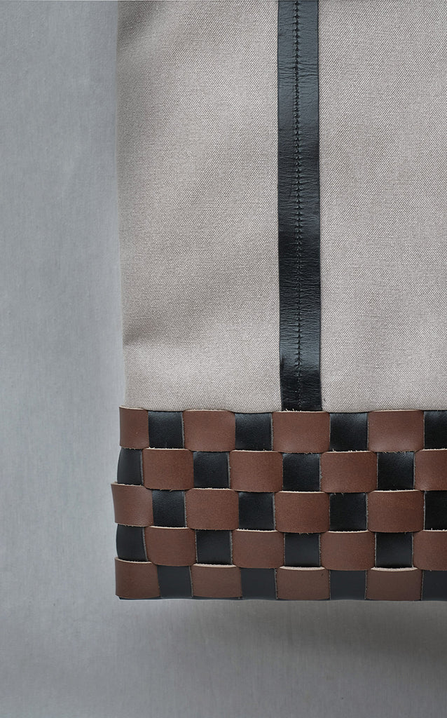 Colours: Black and chocolate brown leather. Stone coloured canvas.