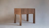 Through its solid shapes this design seeks to convey a stone-like, sculptural air. The texture of the drawer provides formal complexity, offering a series of curved planes in which the material has different tones depending on how the light falls. It connects directly with the Brutalist architecture that emerged in the 1950s, but the postmodernist language of Aldo Rossi is also present.