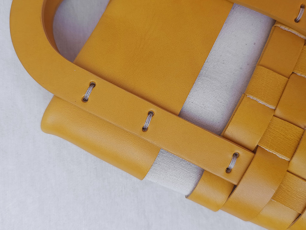 -Piel de vacuno de primera calidad de origen nacional 100% curtida al vegetal y procedente de la industria alimentaria en color amarillo.