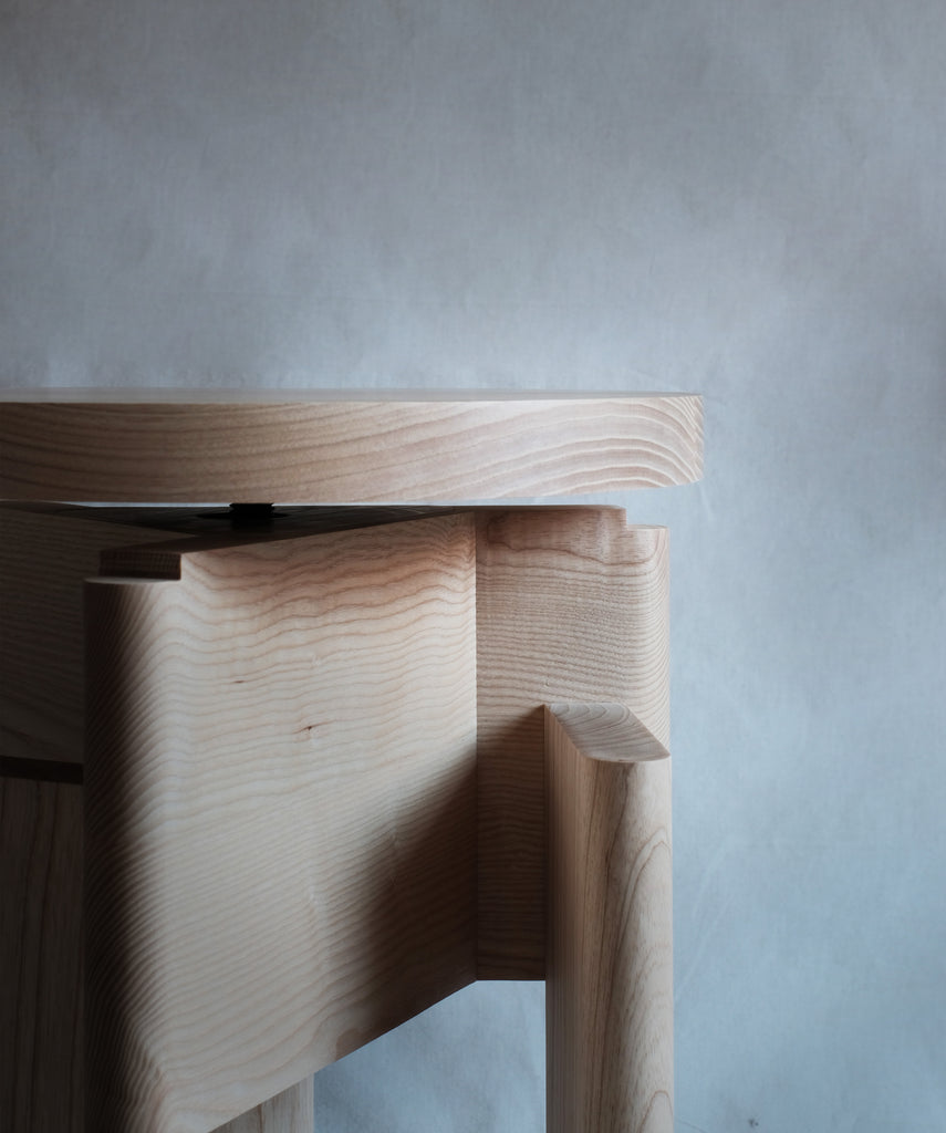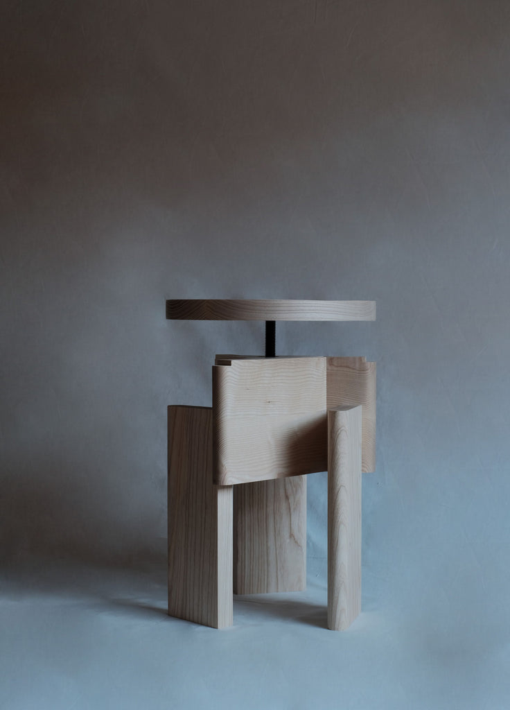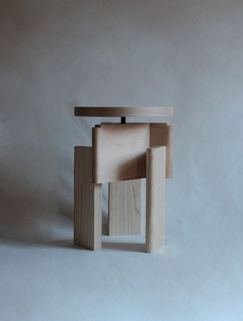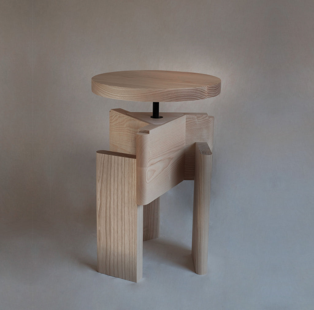 Through its solid shapes this design seeks to convey a stone-like, sculptural air. The multiple orientations of its structural elements create planes in which the wood has different tones depending on how the light falls. It connects directly with the Brutalist architecture that emerged in the 1950s.