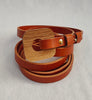 Narrow belt with square oak buckle. To be worn around the waist twice over a dress or top.