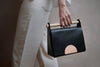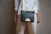 This bag has been created by a single piece of leather that folds on itself acquiring a geometric and rigid shape, for which we have used modelling techniques. It has been sewn entirely by hand using crossed seams on the edges that, together with its wooden handle, reinforce its primitive character and contrast with the geometry. All edges have been burnished and hand painted with water- based paints. It is a versatile bag that can be used in various positions. It has a 115 cm adjustable strap that can be easily removed.