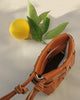 Spacious wallet with a coin compartment, card compartment and ample space for keys, make-up or other small items. It consists of a braided leather structure that holds and protects a canvas bag. Includes an adjustable and removable shoulder strap.