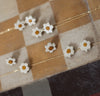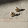 Mini Concha earrings, handcrafted. Inspired by traditional hexagonal hydraulic floors. Their floral shape is the result of joining 7 small hexagons. Small and light, they will give a delicate touch to your days.