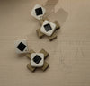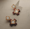Victoria Midi earrings, handcrafted. Inspired by the geometries of traditional hydraulic tiles. Composed of a Greek cross and squares of different tones and thicknesses, they are a play of colours and depths. They are full of details, light, comfortable and will give a special touch to your everyday life. Butterfly clasps. For pierced ears. Colours: Available in two options: olive green, off-white and black / cherry, peach and off-white.