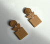 Geometric earrings formed by a circle, a semicircle and a square made of oak wood sewn together with ivory-coloured thread. Butterfly clasp. For pierced ears. They are warm and go with everything, weigh nothing and empower any look.Materials: