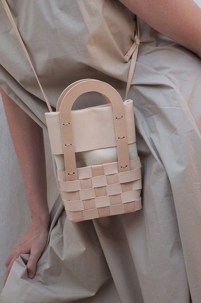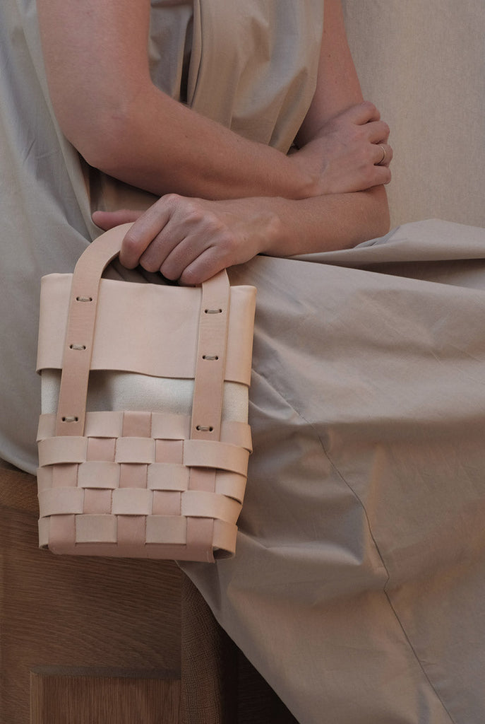 The MIMBRE bag series is inspired by the symbolism of braiding, craftsmanship and the sense of calm, tranquillity and well-being they convey. It is a revision of traditional basketry to adapt it to our everyday life, using the colours of the sky, light, shadow and the basket.