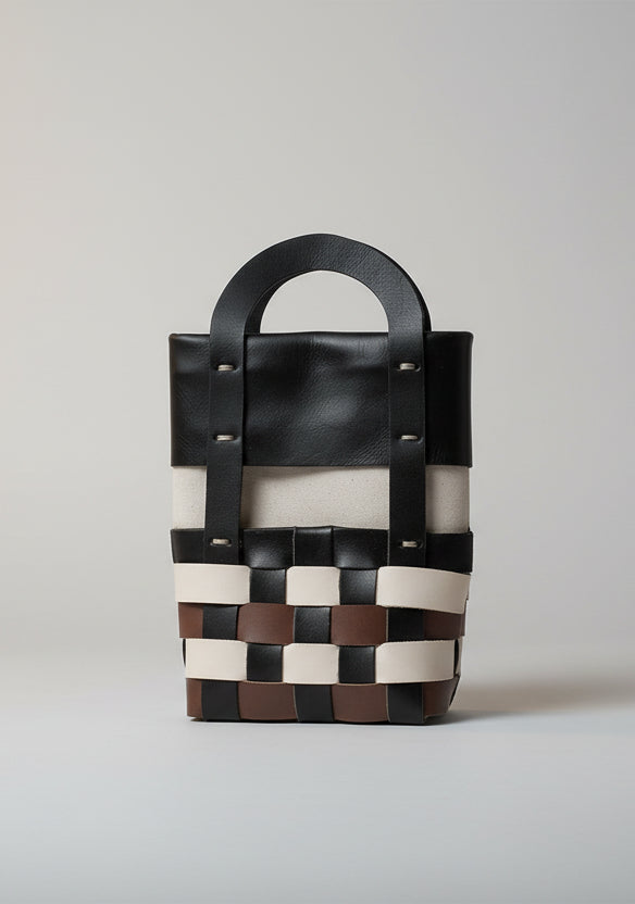 The MIMBRE bag series is inspired by the symbolism of braiding, craftsmanship and the sense of calm, tranquillity and well-being they convey. It is a revision of traditional basketry to adapt it to our everyday life, using the colours of the sky, light, shadow and the basket.